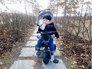지난해 제리 군이 선물받은 세발자전거 키즈 듀오 블랙에디션에 이어 올해는 유모차 유아 자전거를 선물받아 사용하고 있다.