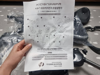 마지막으로 보조 핸들을 조립하고 나면 아이가 스스로 자전거 페달을 밟을 수 있는 시기가 되면 안전바와 핸들을 분리하면 일반 세발자전거로 사용할 수 있어 좋다.